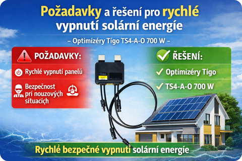 Od 01. 05. 2023 jsou nařízeny novou vyhláškou pro bezpečnou instalaci FVE mj. požadavky na vypnutí / odpojení FVE, což skvěle zajišťuje právě optimizér Tigo TS4-A-O 700W, pokud je ve spojení s řídící jednotkou CCA Kit + TAP.