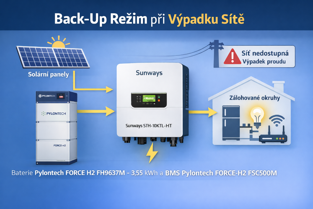 ✔️Pro záložní provoz musí být připojena kompatibilní baterie (např. Pylontech FORCE H2 FH9637M 3,55kWh).